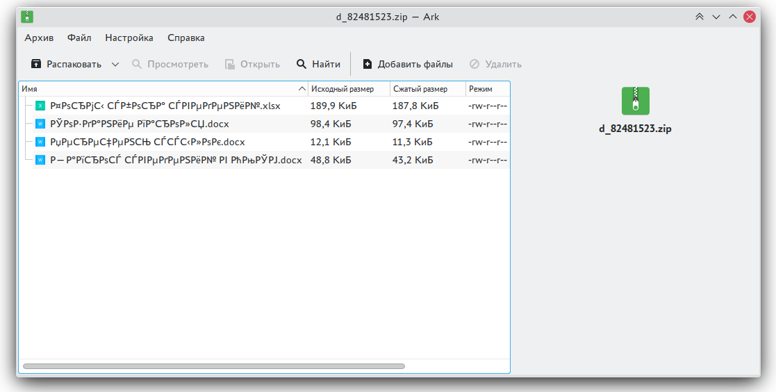 Хотя внутри документов всё отображалось нормально. Распаковка документов тоже была в таких непонятных символах. Решение было найдено в группе АльтЛинукса в Телеграмме по ссылке https://t.me/alt_linux. Благодаря совету одного из пользователей группы, проблема с отображением символов в содержимом архива. Решение простое…. Делаем следующее….